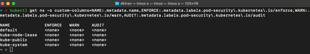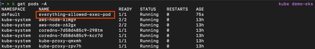 The pod deployed successfully. This tells us that the default Pod Security Admission profile on EKS is running in privileged mode, which does not enforce any restrictions on pod security configurations. This permissive default is one of the key differences we will explore when comparing cloud providers in future posts.